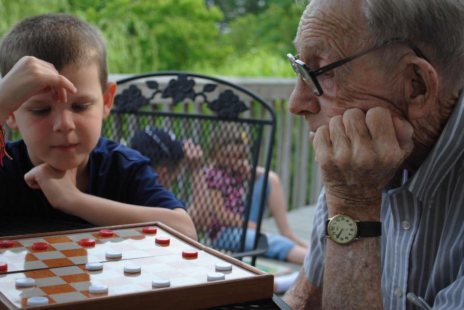 watching my 96 year old grand-dad play checkers with 6 year old Toby